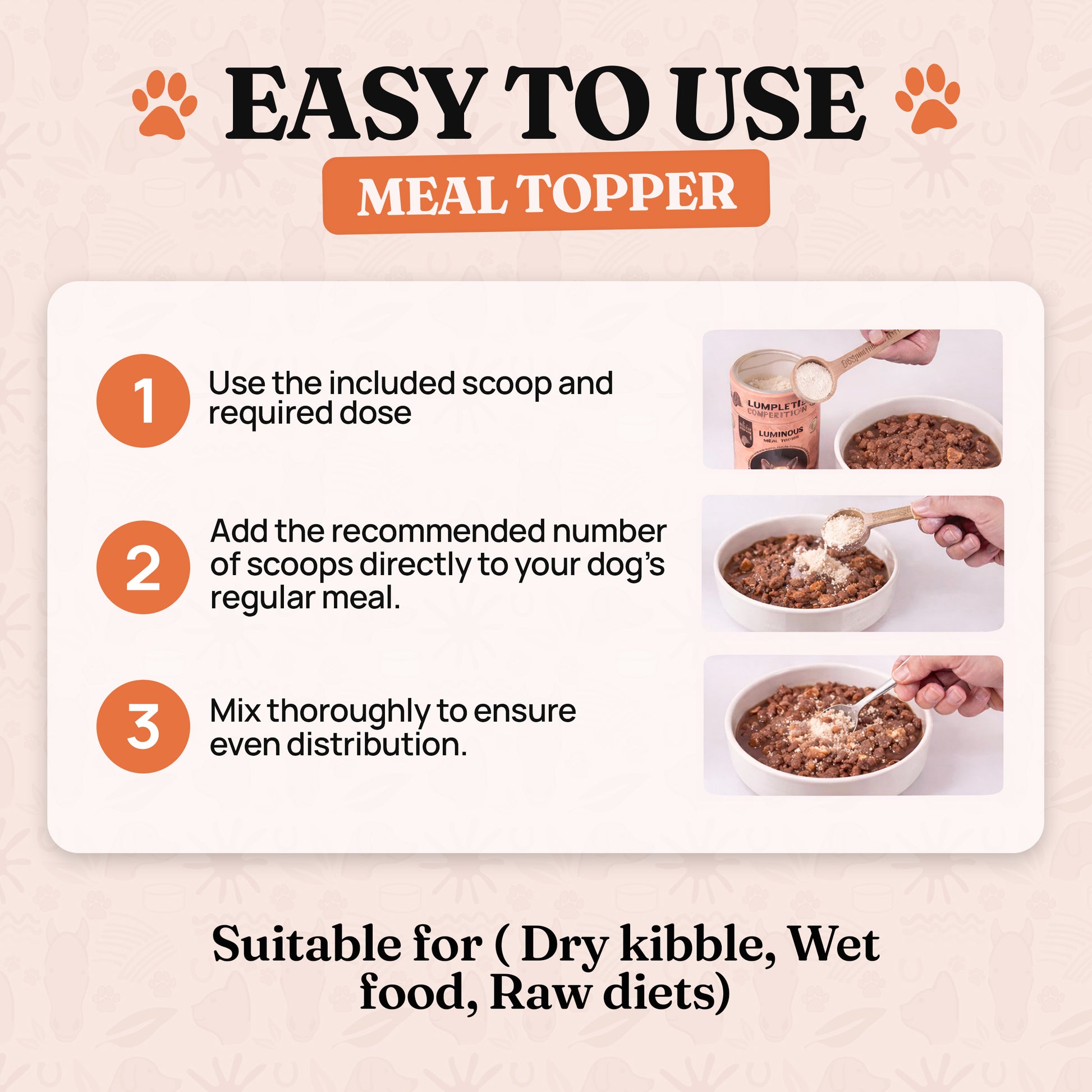 A nourishing meal topper that gives your dog a healthier skin and a noticeably shinier coat.