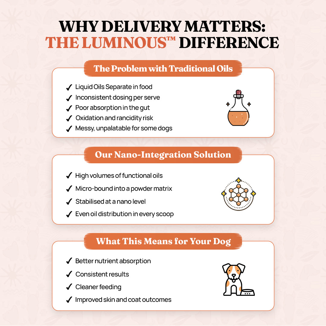Rich in beneficial Omega-3s, supporting optimal skin, coat condition, and joint function.